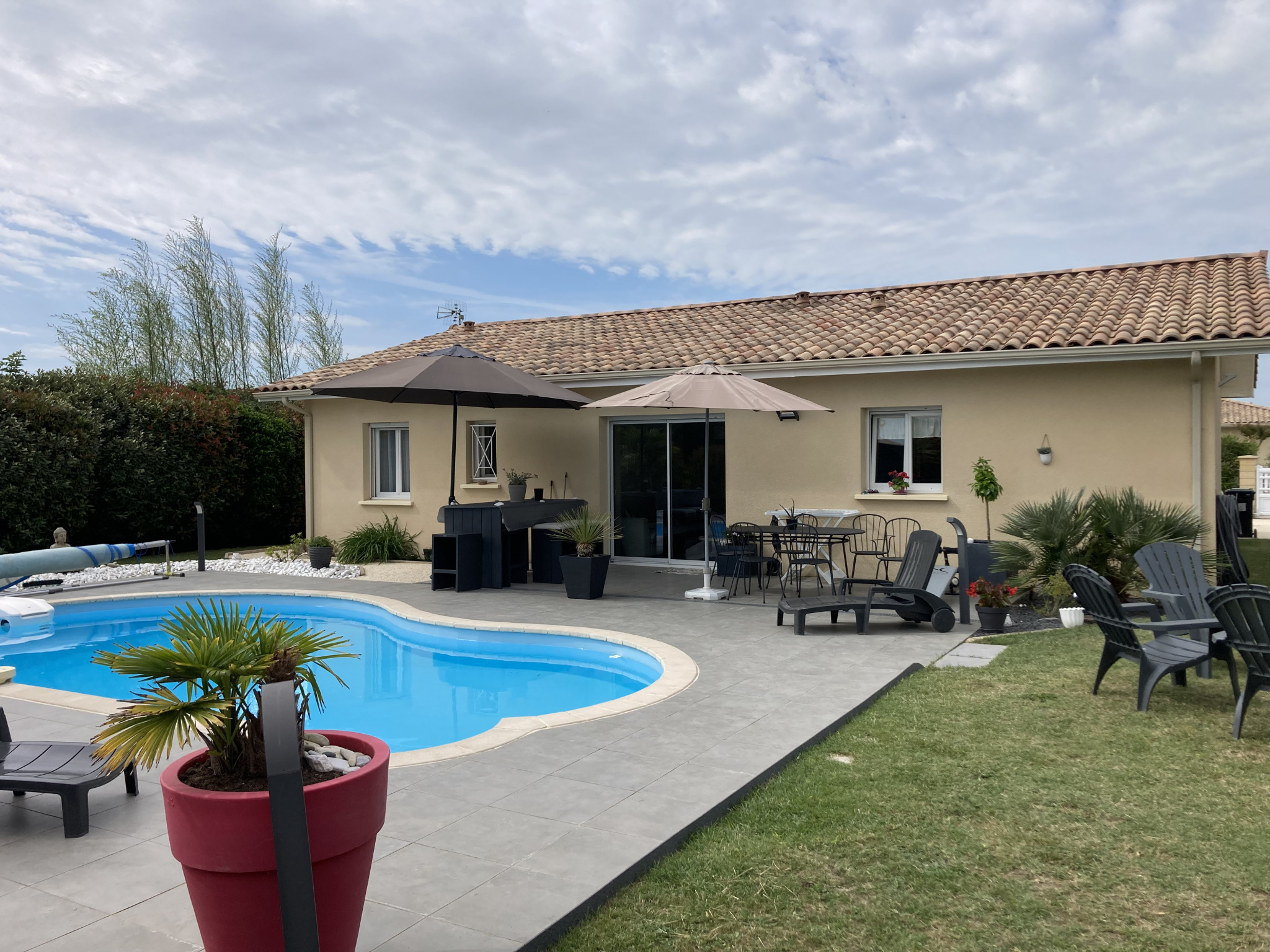Bazas (33430)Sur la commune de Bazas, cette maison de 2007 de 93m² vous offre un espace extérieur impeccable et réalisé avec goût. Vous disposerez d'une piscine de 8X4 équipée d'une pompe à chaleur et disposée à coté d'une terrasse aménagée pour recevoir vos amis aux beaux jours. Un cabanon dans un coin du jardin abritera votre outillage. Un garage attenant à la maison laisse entrevoir la possibilité d'une 4ème chambre moyennant travaux.