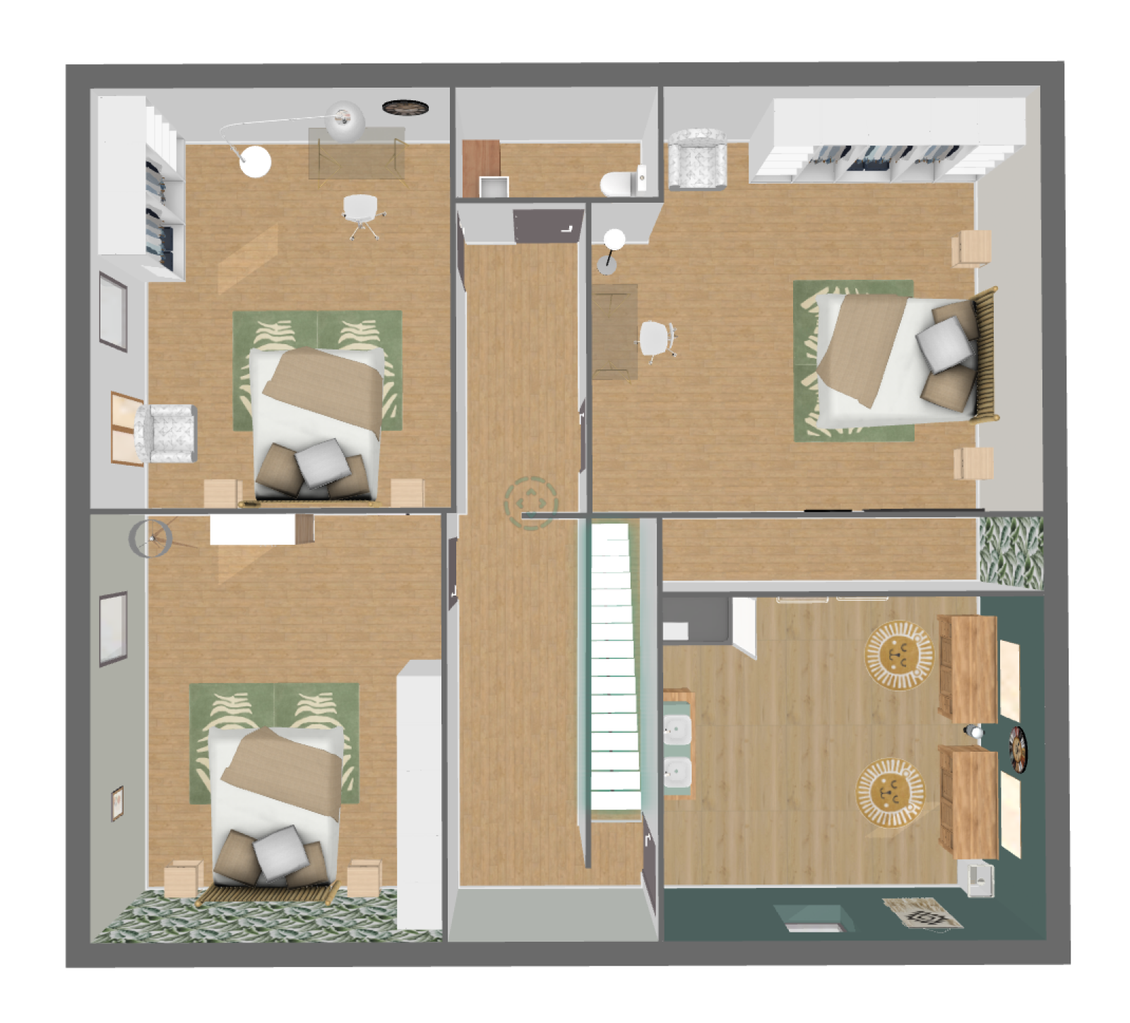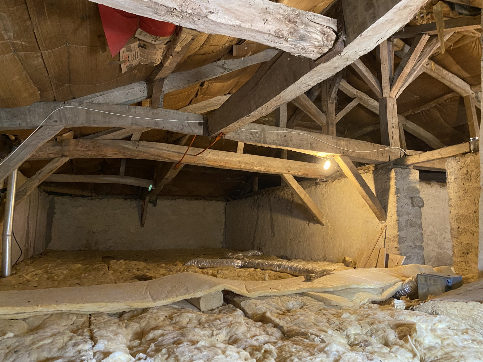 A l'étage, ce grenier réparti en trois espaces vous permet de créer de nouveaux espaces : chambres supplémentaires, bureau, salle de jeux, salle de bains, grâce à la belle hauteur sous plafond et aux menuiseries PVC double vitrage déjà existantes.