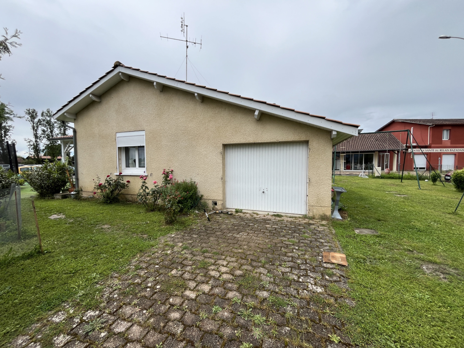 A l'extérieur, un petit jardin et un garage.