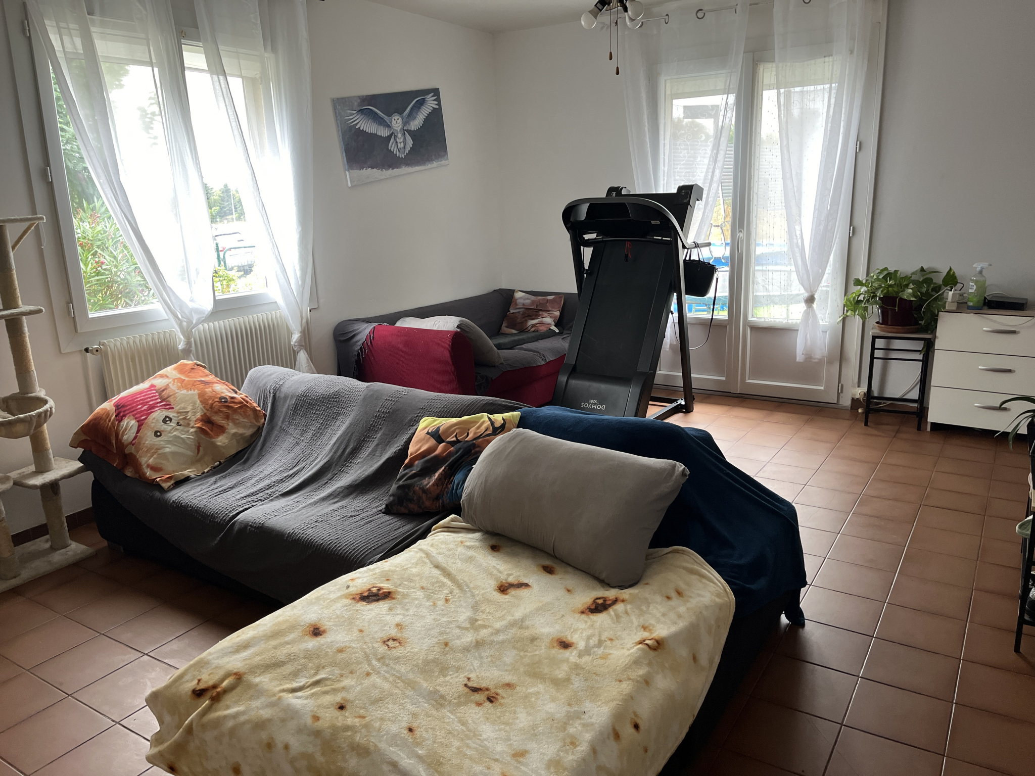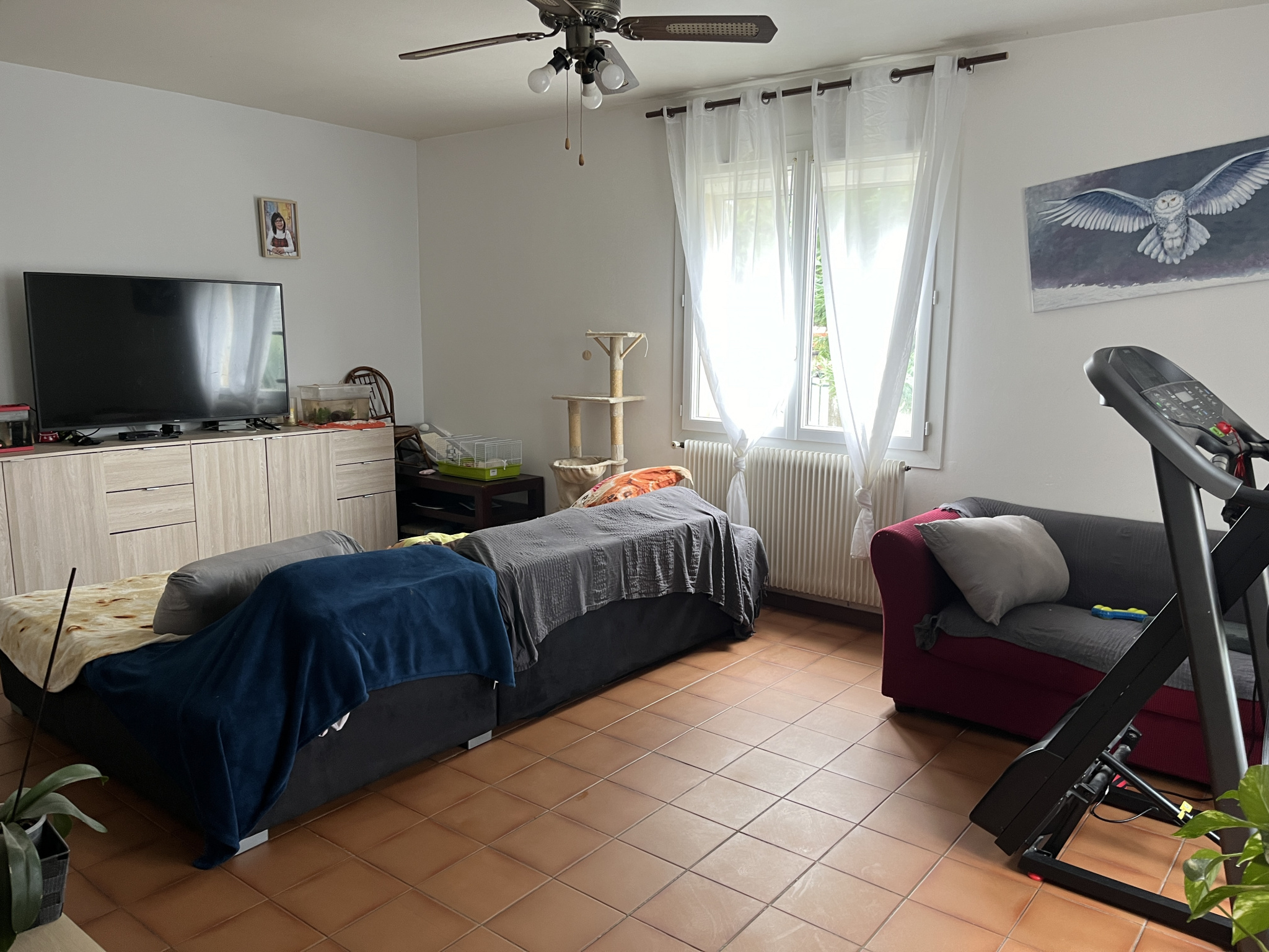 Le premier est loué pour 610 € / mois (bail de décembre 2023) et il comprend une entrée sur cuisine, un salon, deux chambres, une salle d'eau et un wc.