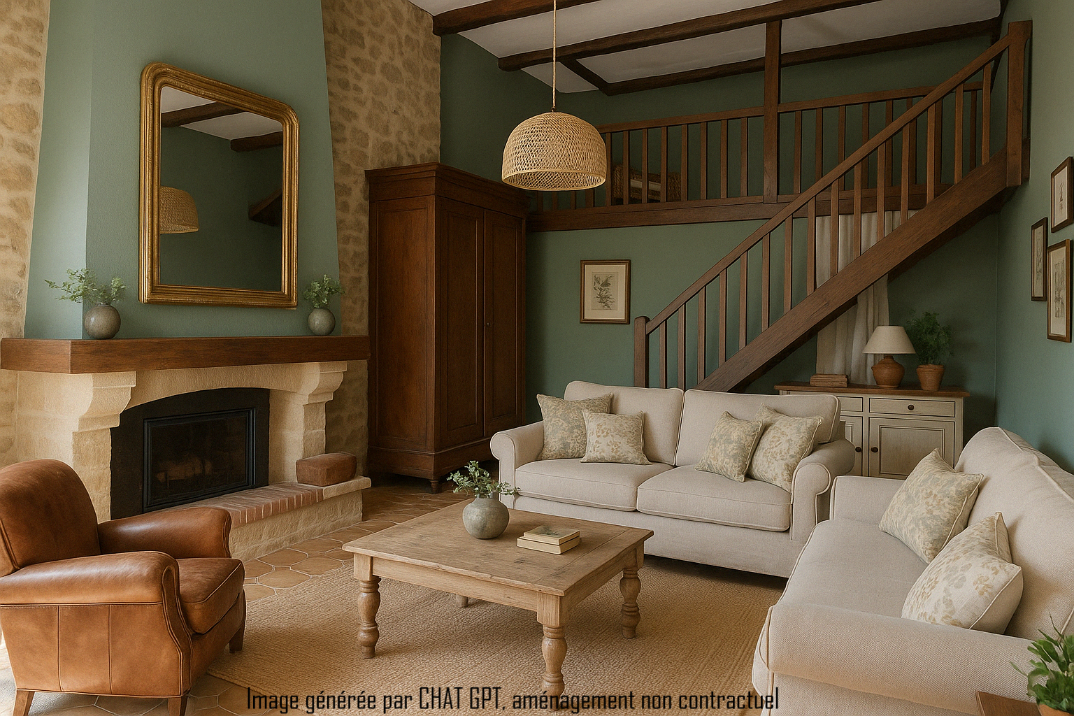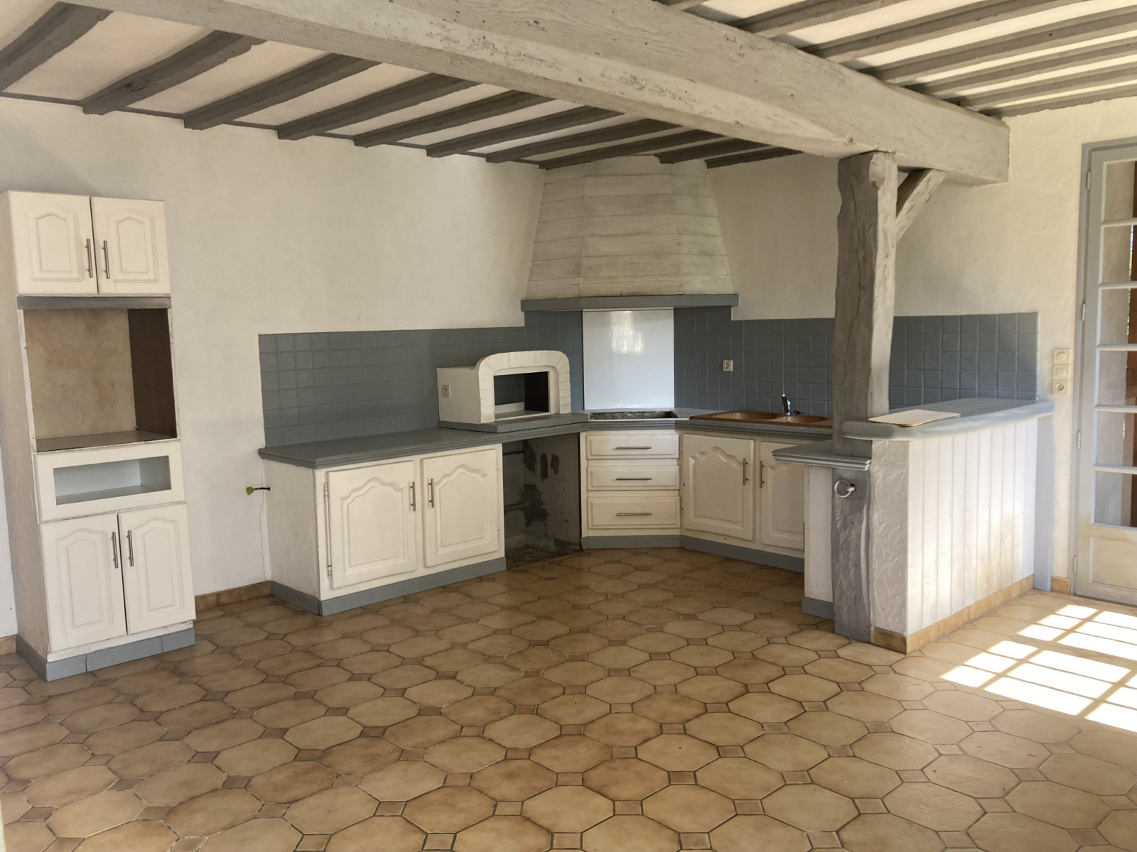 Vous entrerez par la terrasse couverte donnant sur une grande cuisine avec insert. Ensuite un salon de 37m² avec une belle hauteur sous plafond et une cheminée équipée d'un insert.