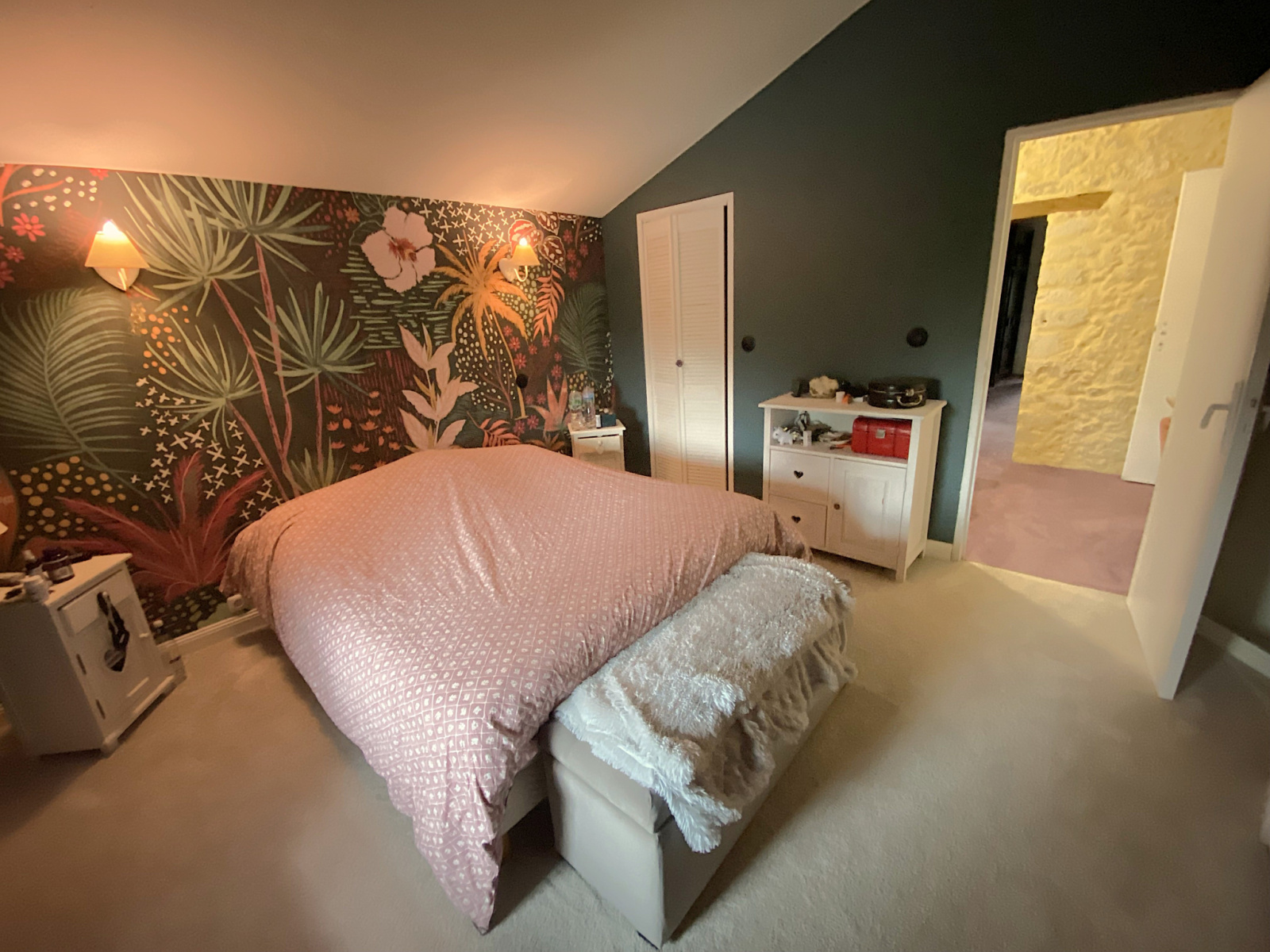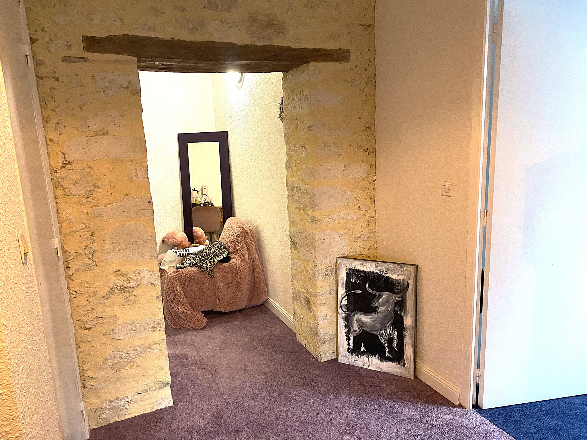 L'étage se compose d'un beau pallier en pierre apparente et de 3 chambres suplémentaires. Vous retrouverez égalelement une mezzanine et une pièce de rangement.