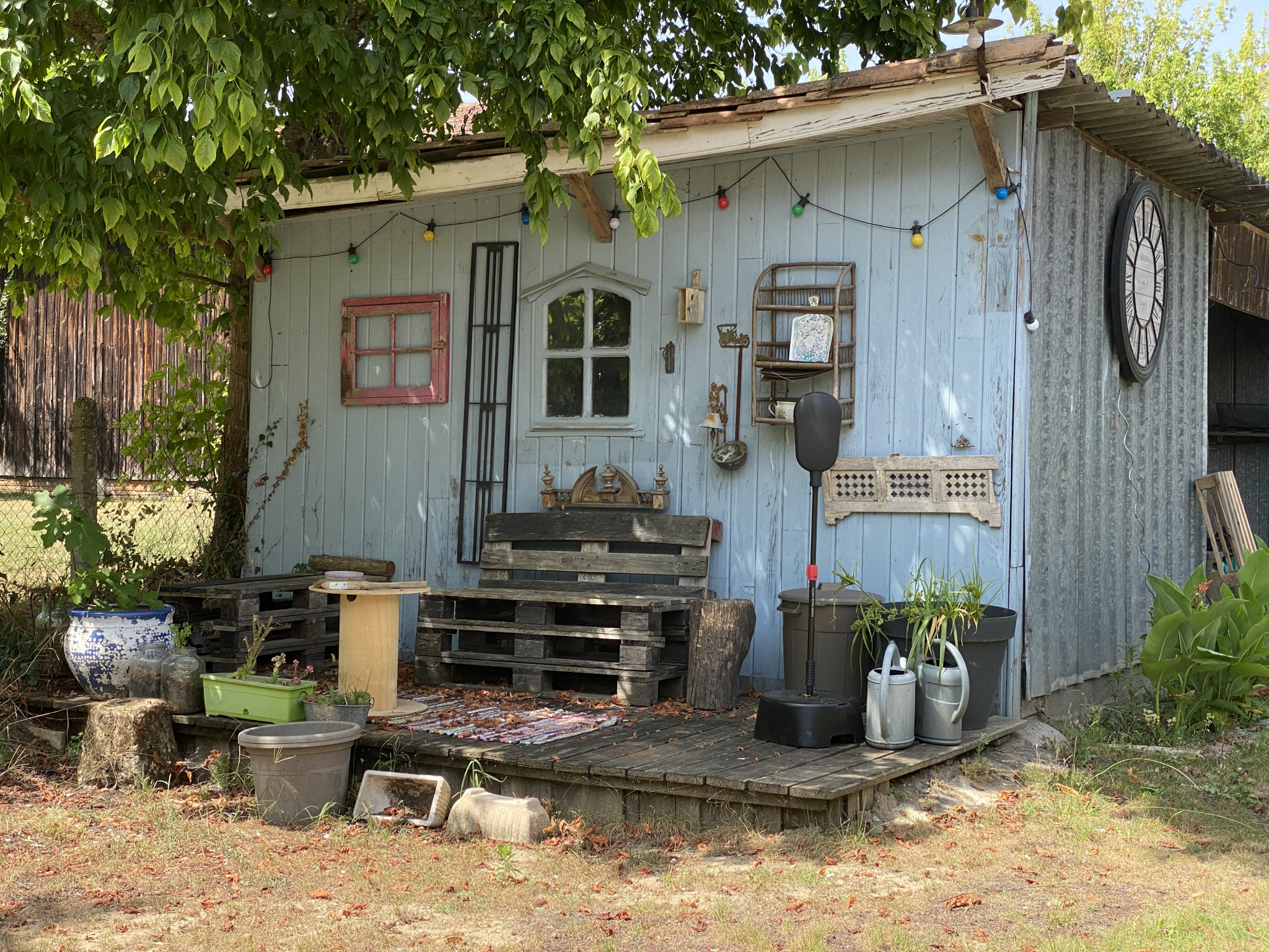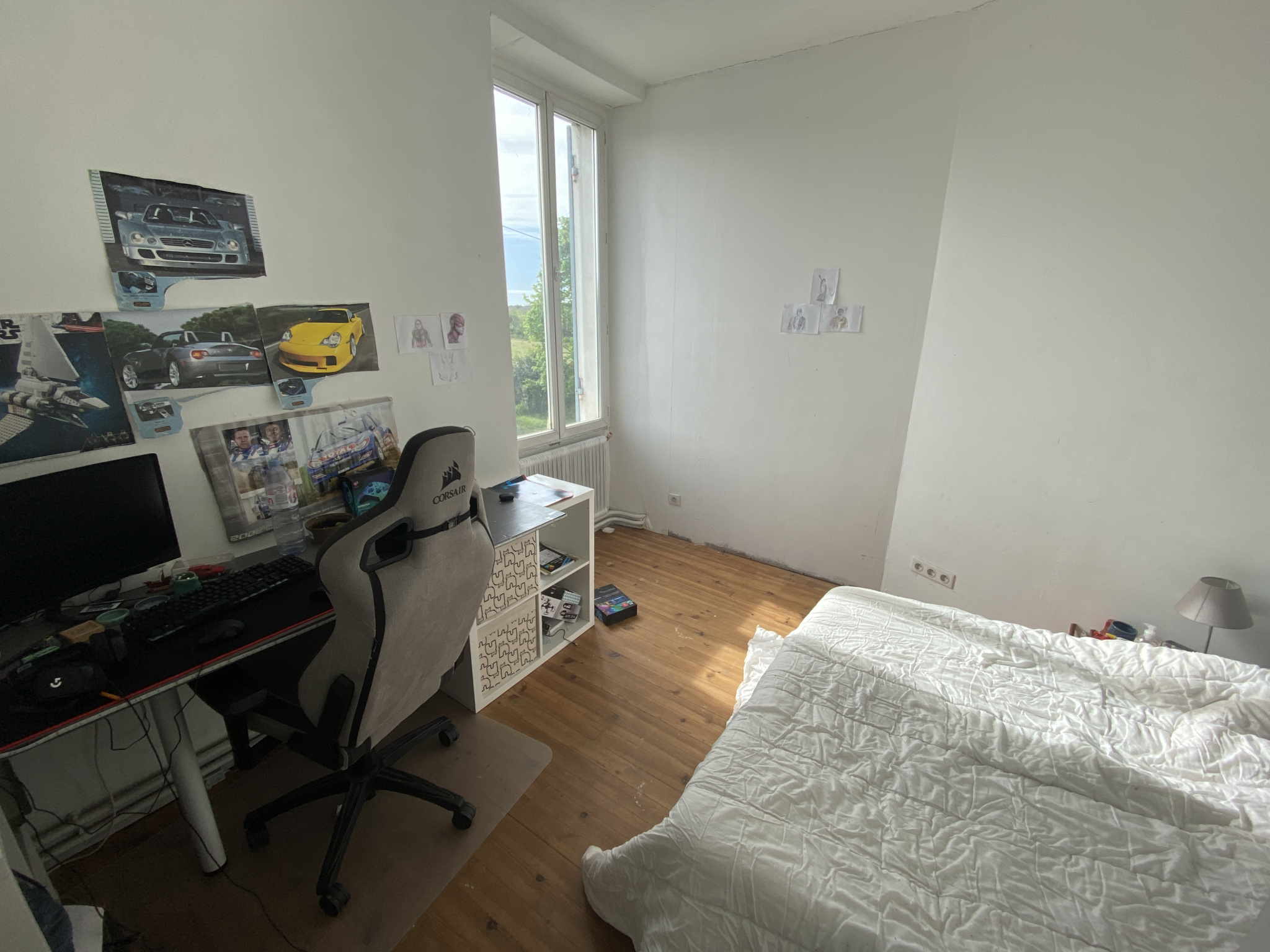 A l’extérieur, vous pourrez profiter d’un jardin engazonné et ranger du matériel dans le garage en bois.
