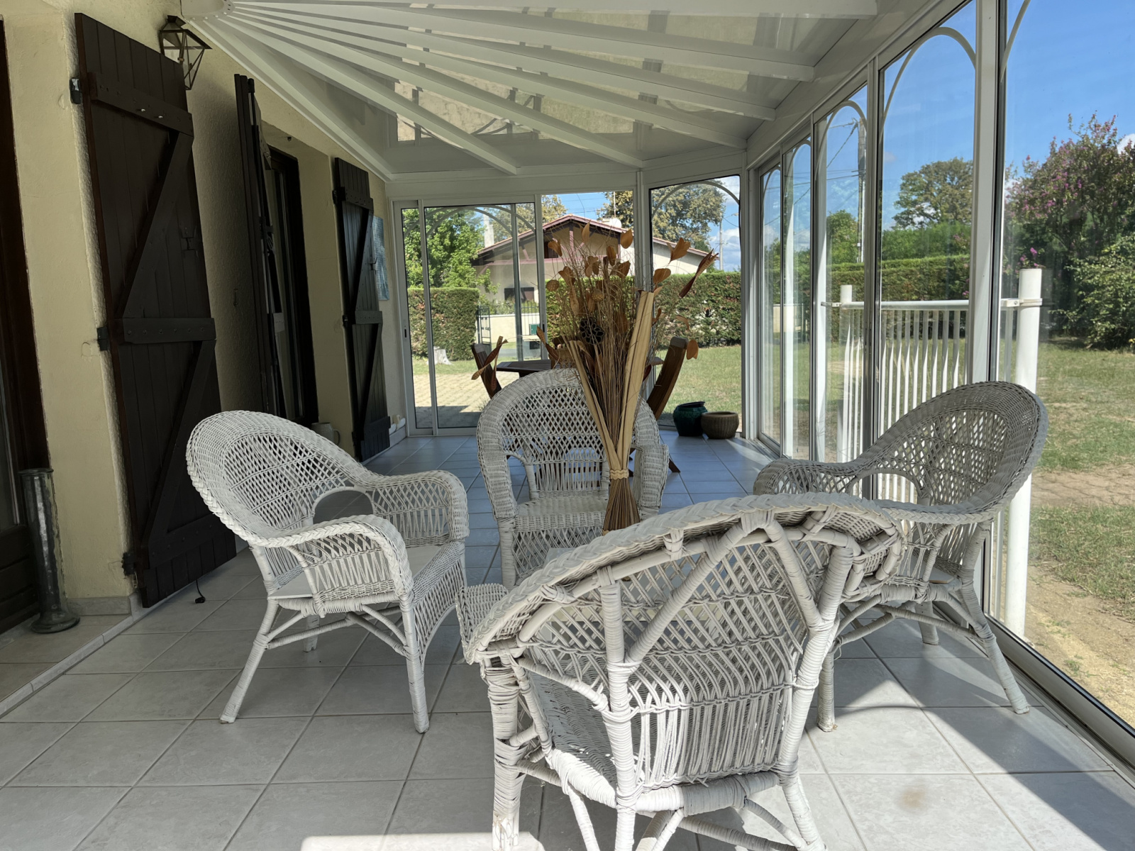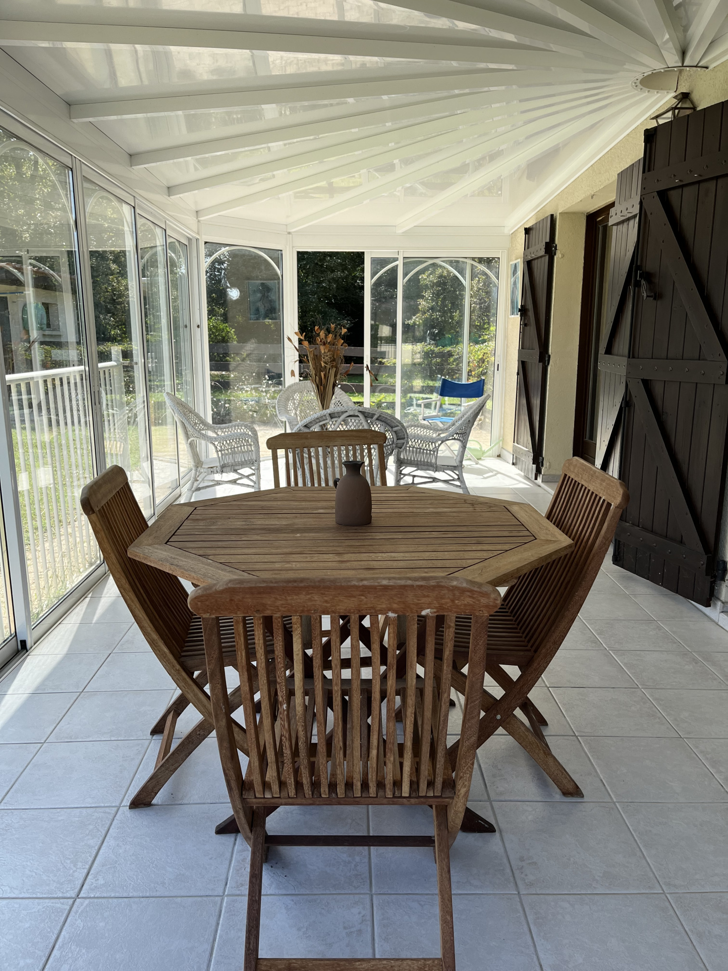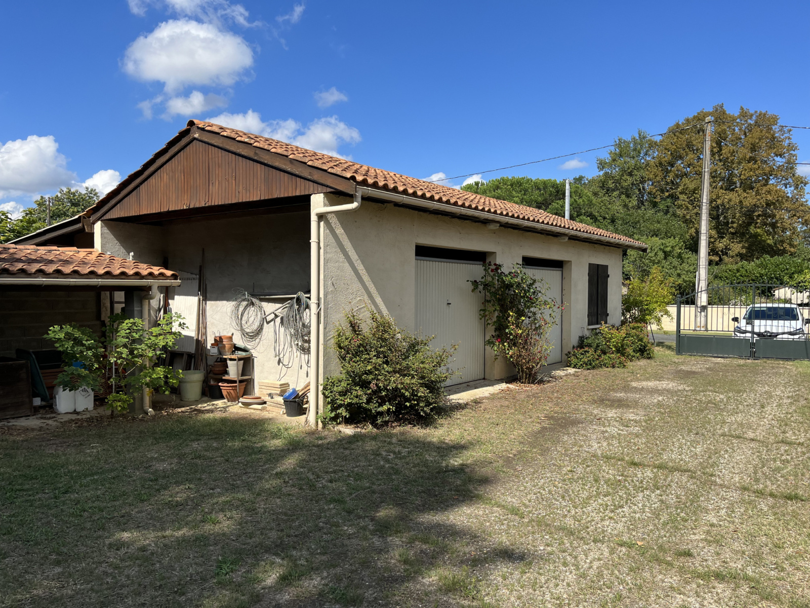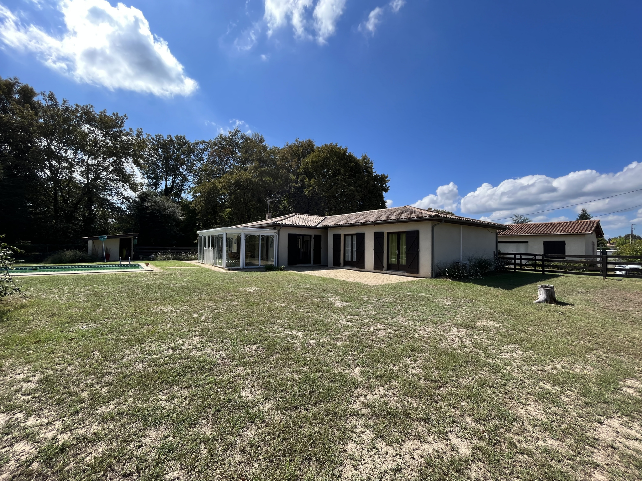 Dans le jardin, vous trouverez un double garage avec eau, électricité et triphasé, un abri piscine et un abri bois. Le terrain fait 2590m²