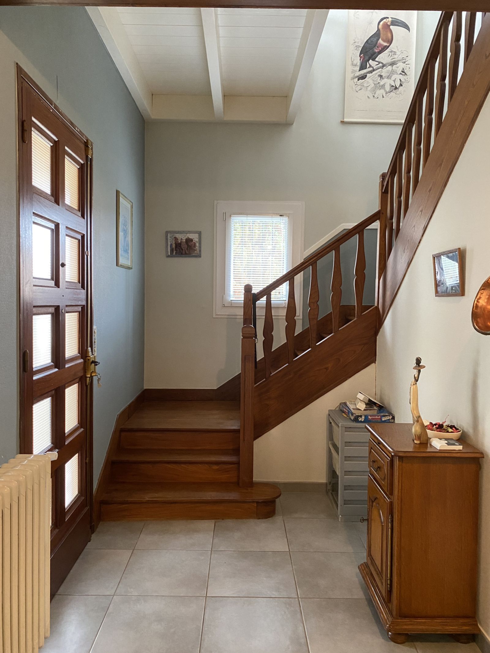 La belle cage d'escalier vous mène à l'étage, où sont disposées 4 chambres, une mezzanine, une salle d'eau.