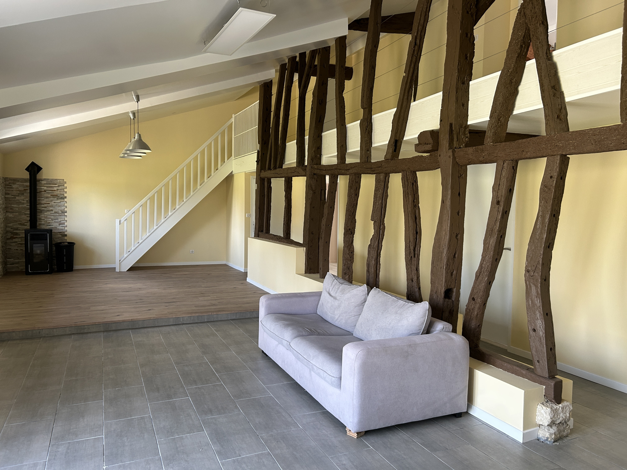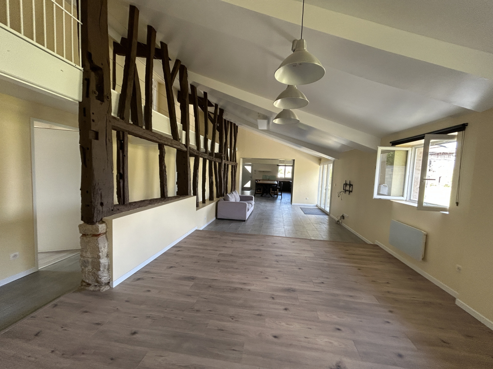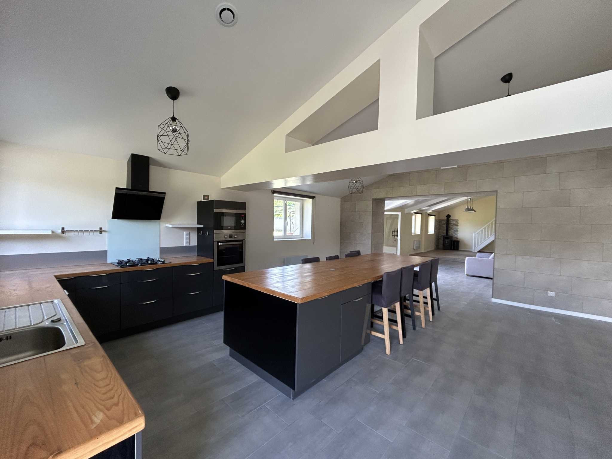 La pièce principale de 85 m² avec plafond cathédrale et la cuisine équipée avec son très grand îlot central sont idéales pour accueillir une famille !