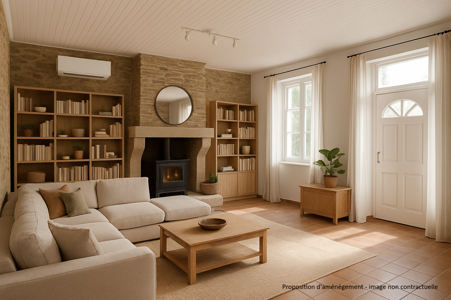 Un vaste séjour avec cheminée, idéal pour les soirées conviviales